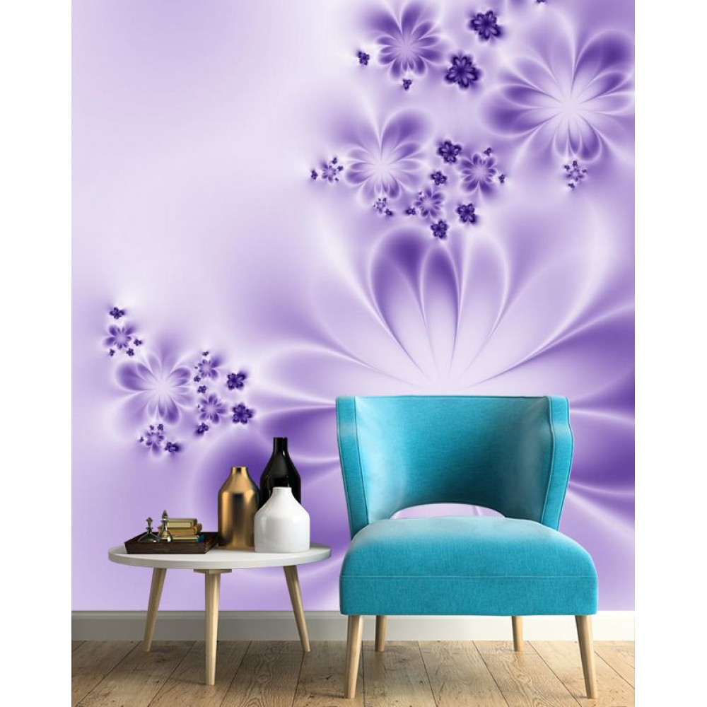Оригинальные Фотообои 3Д сиреневые цветы на шелке оптимальное дополнение к уютному интерьеру спальни: