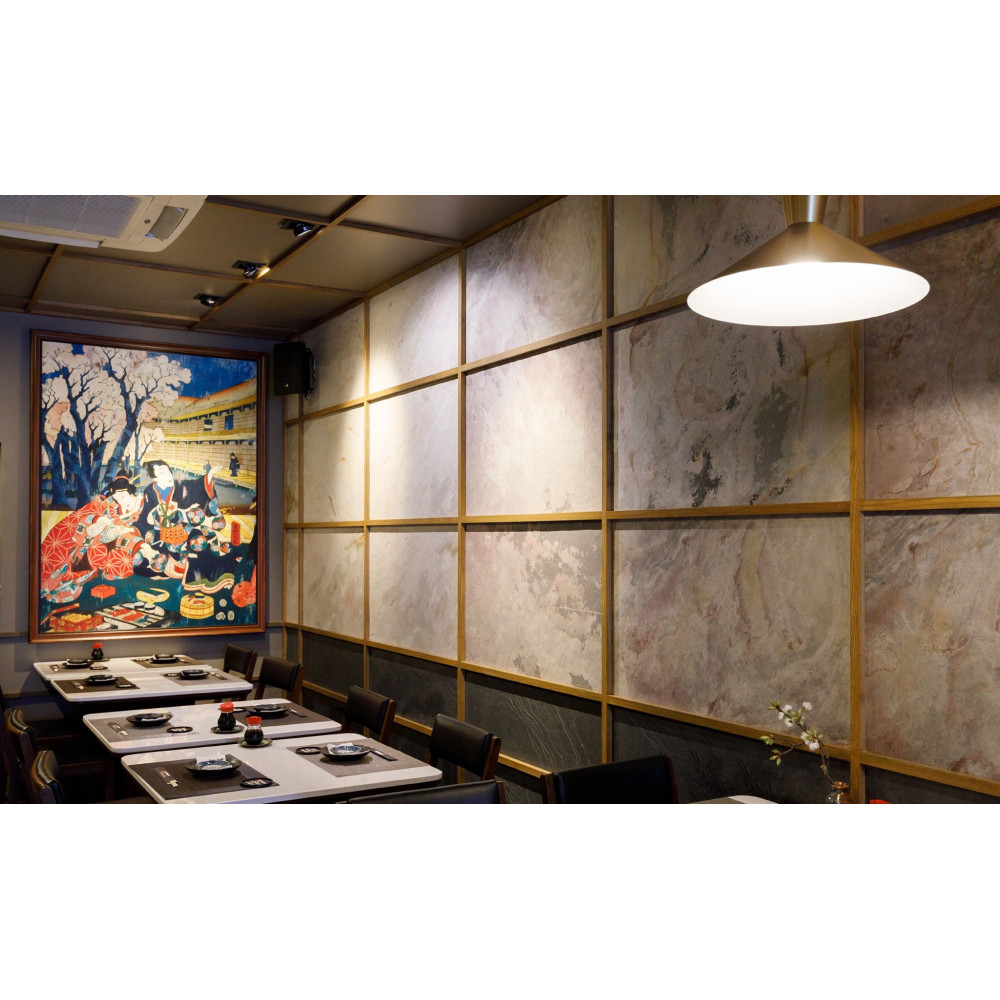 Материал идеально подходит для современных стилей: минимализм, эко, лофт и премиум-дизайн. Благодаря природной текстуре он добавляет пространству глубины, тепла и натуральности. Гибкий камень позволяет создавать бесшовные поверхности и реализовывать сложные дизайнерские идеи без ограничений.