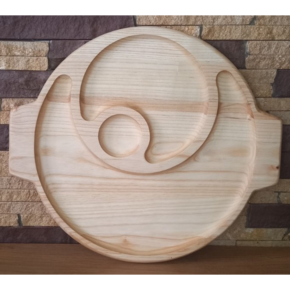 Кругла дерев'яна менажниця для подачі страв від українського виробника. Відмінний вибір для ресторанів, кафе та домашнього використання. У виробыі передбачені виїмки для комфортнішої подачі їжі. Підійде для подачі холодних та гарячих страв, різних нарізок (м'ясні, рибні, сирні, овочеві, фруктові, горіхів, сухофруктів, чипсів.