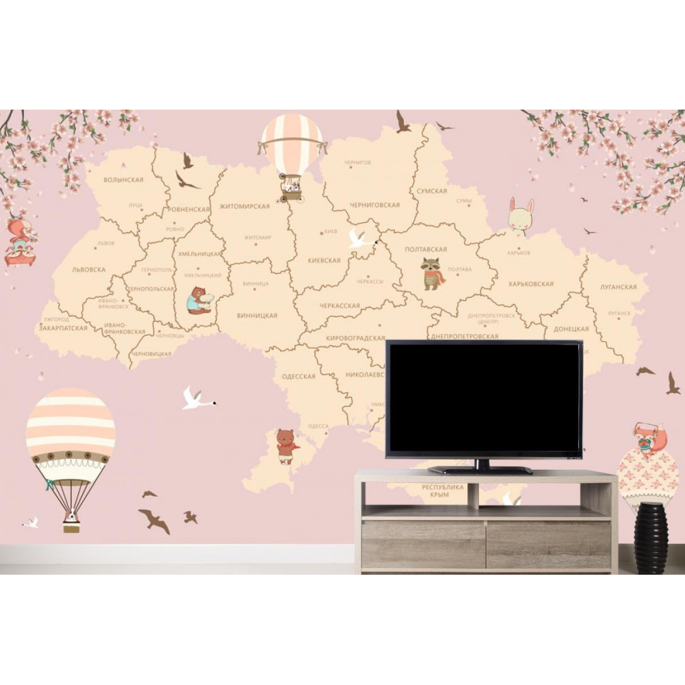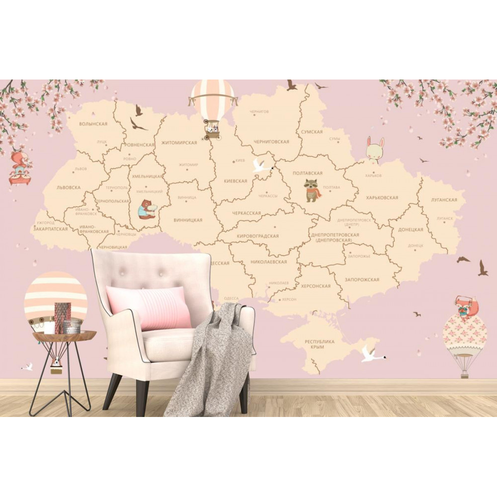 Дитячу кімнату для дівчинки зазвичай оформляють у рожевих тонах. Проте зовсім не обов'язково прикрашати її виключно казковими персонажами. Фотошпалери Дитяча карта України - стильний, оригінальний і дуже корисний варіант. Вони гармонійно доповнять інтер'єр, при цьому їх можна використовувати як навчальний матеріал і в ігровій формі розповісти дитині більше про країну, де вона живе.
