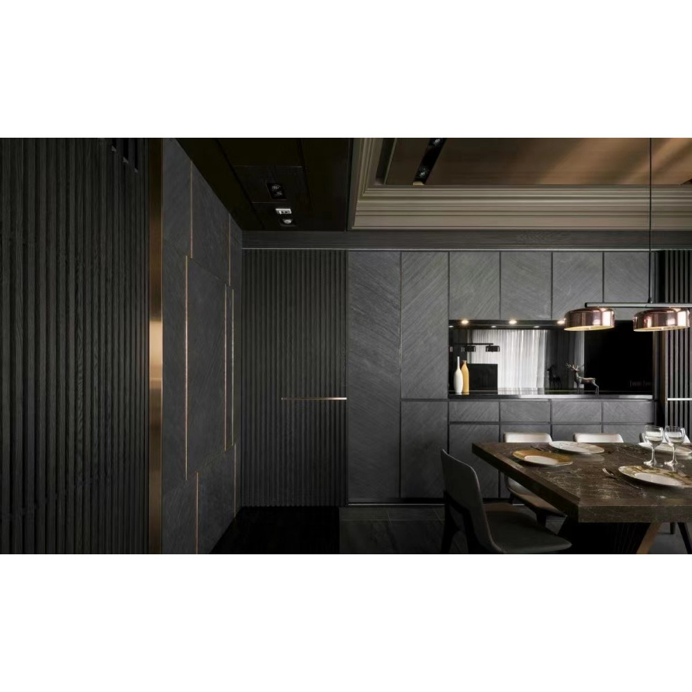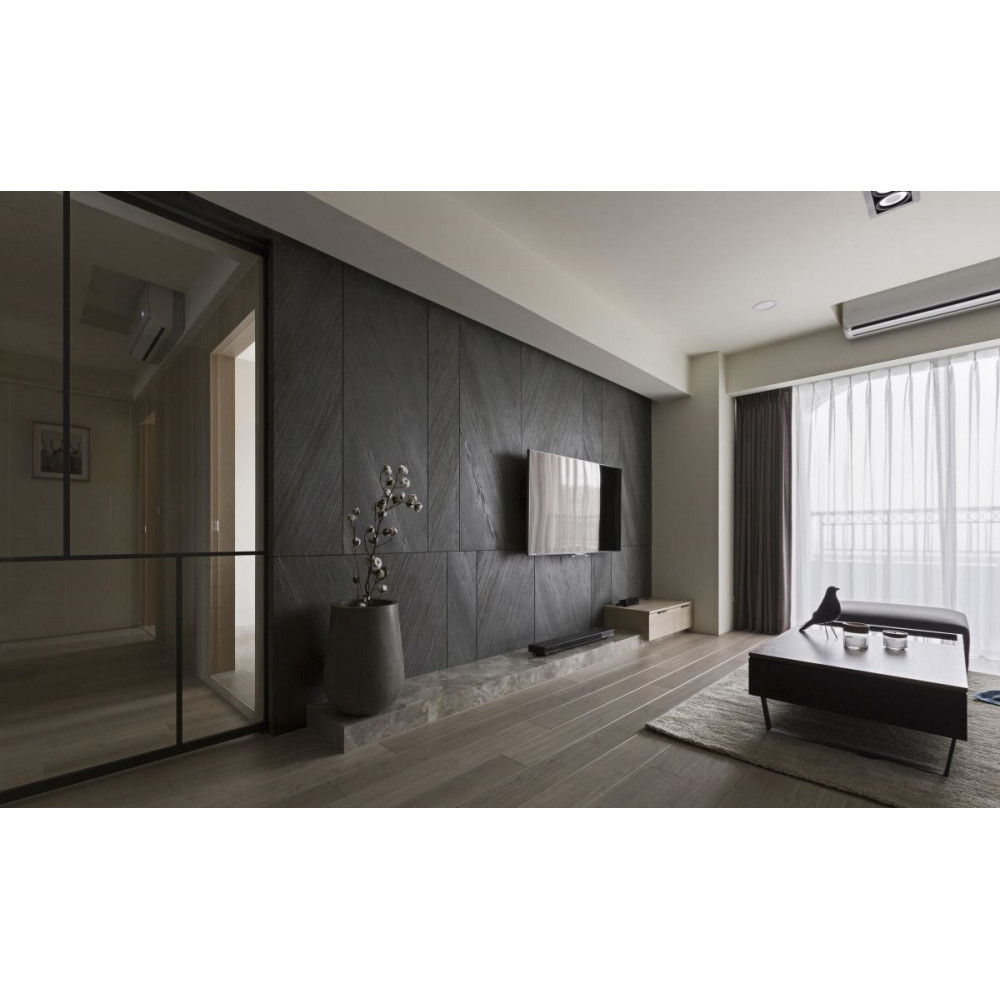 Натуральний гнучкий камінь GRAPHITE CHEVRON підходить для широкого спектра дизайнерських рішень: